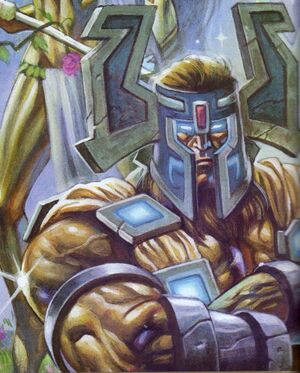 Опасаясь, что вмешательство титанов из-за их колоссальных размеров может нанести непоправимый ущерб или даже уничтожить душу мира, Агграмар предложил создать кованых титанами, которые будут сражаться вместо них. Когда остальные члены Пантеона вложили часть своих сил в хранителей, величайших из кованых титанами, Агграмар наделил Тира своей храбростью и силой, сделав его величайшим воином среди кованых титанами.[5] Хранители были созданы из титановой стали, а слитки, использованные для их изготовления, были выкованы самим Агграмаром.[6]