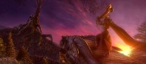 После битвы у горы Хиджал один из фурболгов унес поврежденный идол Ремула в берлогу Колючего Меха, расположенную в Ясеневом лесу.[32] Тиранда и Малфурион, оставшиеся на Хиджале, приступили к восстановлению. Большая часть окрестных лесов была разрушена, корни Нордрассила повреждены и иссохли. Хотя со временем все должно было восстановиться, чары, наложенные Аспектами драконов, исчезли, и ночные эльфы стали смертными. Друидам стало труднее входить в Изумрудный Сон,[1] и они считали этот период темным временем.[33] Позже ночные эльфы вернулись в Ясеневый лес и начали исцелять этот регион.[34] Еще долгие годы некоторые из них не могли смириться с решением Малфуриона.[35]