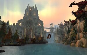 - Изначально это место было местом высадки принца Артаса, который преследовал Мал'Ганиса, как показано в Warcraft III[3] и в книге Arthas: Rise of the Lich King.[4] Позднее это место стало находится в Драконьем Погосте на Забытом взморье. В хрониках позже было указано, что Артас высадился в Ревущем фьорде,[5] а в книге Exploring Azeroth место высадки Артаса — Забытое взморье в Драконьем Погосте.[6]