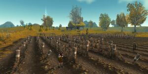До Катаклизма ферму контролировали механические уборочные големы братства Справедливости. Неподалеку находились фермер Хмуробров и его жена, которые сбежали со своей тыквенной фермы.