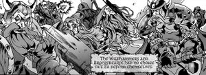 Используя темную магию, Модгуд вступила в жестокую битву с удивленными дворфами Громового Молота. В результате смелой контратаки сама Модгуд была убита, а войска Черного Железа отступили к своим землям. В конце концов они были пойманы и раздавлены преследующими их дворфами Громового Молота и Бронзобородами, которые оттеснили армию Тауриссана к Красногорью.[3]