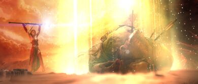 - Рыцари крови использовали силу М'ууру, чтобы воскресить Сангриаса Безмолвного Клинка, хотя было отмечено, что после «слишком долгой» смерти даже Свет не смог вернуть его к ним.[5]