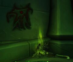 Скелет Гул'дана (без черепа) и оставленные им руны были найдены искателями приключений в гробнице Саргераса.[29]