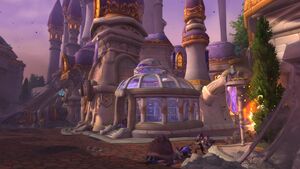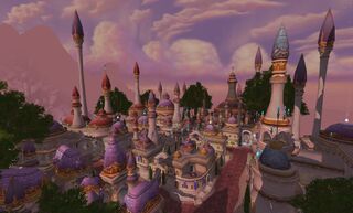 Под пристальным надзором ордена Даларан стал главным центром обучения магов в королевстве.[21][18] Не будучи большим городом, Даларан отличался величественными шпилями и сверкающими улицами, а его жители жили в достатке и безопасности. Штаб-квартирой Кирин-Тора служила Аметистовая цитадель, внушительное сооружение, получившее название благодаря своим каменным стенам, излучавшим мягкий фиолетовый свет. Внутри находились многочисленные библиотеки, исследовательские лаборатории, экспериментальные залы, аудитории, залы для собраний и жилые помещения.[18][22] Полуэльф Алоди был воспитан в приюте Даларана, а позже стал учеником Кирин-Тора.[23]