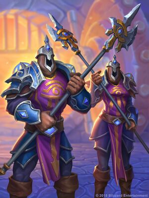 В конечном итоге процветание Даларана привело к тому, что он был наводнен безрассудными магами. Их злоупотребление магией непреднамеренно создало разрывы в ткани реальности, через которые в Азерот проник натрезим по имени Катра'натир. Этот коварный демон распространял свое влияние на сердца и умы населения, в то время как ужасные эпидемии охватили Даларан. По мере распространения недуга в столице нарастала паранойя, поскольку многие горожане, не обладавшие магическими способностями, были суеверны и относились к магам с скрытой тревогой.[19] Впоследствии Катра'натир использовал Апокалипсис, чтобы разжечь эти страхи, а также отравил запасы воды и продовольствия Даларана. После расследования этих явлений Совет Тирисфаля вступил в схватку с демоном, но лишился своего лидера Аэртина Светлой Руки. Мерил Буря Скверны и Алоди разработали план, предусматривающий ритуал Хранителя Тирисфаля, который мог навсегда наделить кого-то частью силы совета. В результате Хранитель Алоди изгнал повелителя ужаса, спасая Тирисфальские леса и Даларан от уничтожения.[25][18] На протяжении более тысячи лет Хранители вели свою тайную войну против Легиона, а Даларан оставался одним из ведущих мировых центров тайных знаний и исследований.[26]