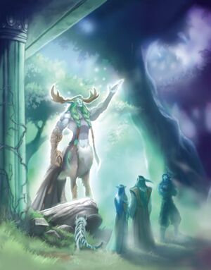 Примерно между -12,000 г. ДТП и -11,900 г. ДТП, полубог Кенарий, первоначально бывший наставником, жил среди кочевых яунголов на травянистых равнинах центрального Калимдора. Он обучал их тайнам дикой природы и друидической магии.[5] Позднее это привело к возникновению мифологии тауренов, в которой утверждается, что они сами были первыми друидами,[6] обученными Кенарием, что, вероятно, является переосмыслением событий, произошедших с их предками.