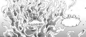 Этот дух был агрессивен и пугающ, и ему не нравилось, когда Нобундо задавал вопросы. Его голос звучал как сильный и мощный шторм, а временами — как тихий гул. Огонь — дух, наиболее пострадавший от конфликтов. Он наделил Нобундо страстью, дал ему новую оценку жизни и желание преодолеть любые препятствия.[2]