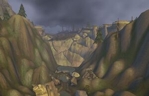 Плотина была разрушена, когда Смертокрыл пролетел над ней, в результате чего большая часть воды из озера вытекла в Болотину. Сумеречный Молот еще больше разрушил плотину с помощью сумеречного ваятеля земли.[3] Район был в основном заброшен, хотя группа геодезистов под руководством Форбы Крепкая Стамеска изучала нанесенный ущерб.