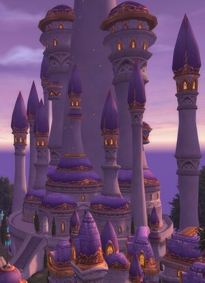Даларан, ключевой центр магической силы на Азероте, претерпел значительные трансформации в период противостояния Пылающему Легиону. После разрушительной битвы, Джайна Праудмур и совет Кирин-Тора осуществили масштабную телепортацию города в перевал Мертвого Ветра, расположив его в воздушном пространстве над Каражаном. Эта стратегическая передислокация была призвана укрепить оборону Восточных королевств.[125] В окрестностях руин, возле Каражана, объединенные силы магов Кирин-Тора и Аметистового Ока сдерживали натиск демонов Пылающего Легиона, стремящихся прорваться к вратам хозяйского погреба. Одновременно, в предгорьях Хилсбрада, местные силы Даларана под руководством верховного мага Седрика занимались восстановлением руин даларанского кратера.[126]