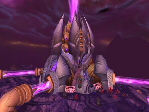 Кель'тас проводил несколько экспериментов по всему Запределью. Один из них заключался в создании и сбросе красных кристаллов, вызывающих колоссов и сводящих их с ума.[45] После того как эксперимент провалился из-за вмешательства Кенарийской экспедиции, он использовал артефакт, созданный в рамках проекта в Файервинг Пойнт, чтобы уничтожить Перелесок Кенария в качестве акта мести. Он использовал клан Костеглодов в качестве отвлекающего маневра, но, тем не менее, проект был уничтожен Альянсом и Ордой,[46] а клан Костеглодов был побежден.