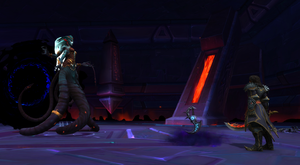 Стремясь лишить Азшару контроля над приливным камнем Голганнета, Орда и Альянс объединились и использовали копья Сурамара для разрушения защитного барьера вокруг колонны и убийства ее защитницы, леди Зариссы.[26][27] Когда Джайна Праудмур и Лор'темар Терон начали спорить о том, кто нанесет последний удар, Азшара прервала их препирательства, официально пригласив всех войти в свой дворец.[28]