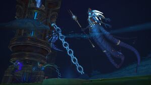 - 500 лет назад Азшара заточила существо по имени Левирот в водах руин Терзающего Бича. Она также благословила трезубец Наз'жана, принадлежавший императору клана Терзающего Бича Наз'жану.