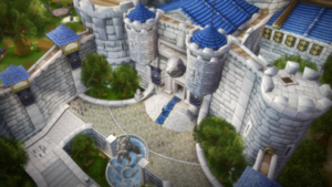 Из крепости открывается вид на весь город, так что король может наблюдать за массами. Горожане с удовольствием пользуются садом и королевской библиотекой, прогуливаясь по территории и читая. В замке есть и личные помещения — комнаты короля, гостевые покои для именитых гостей и небольшая королевская оружейная для особо редких экземпляров. В замке есть личный контингент[10] свирепых преданных стражников, а также значительное число агентов, выдающих себя за мелких аристократов или слуг короны. В замке есть множество тайных ходов.[11]