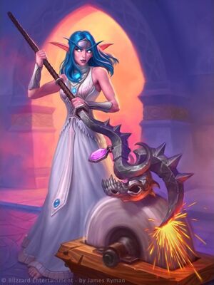 Тем не менее, она необычайно находчива и чрезвычайно эффективна в поимке и противостоянии могущественным противникам, владеющим магией. Она с легкостью одолела нескольких высокорожденных и едва не убила Малфуриона Ярость Бури.[26] Также ей удалось за считанные секунды захватить нескольких опытных охотников на демонов и заключить их на долгие годы в зачарованные кристаллы в Казематах Стражей.[25] Ее сила как стражницы, по-видимому, значительно усилена жаждой мести. Являясь бывшей верховной жрицей Луны, она хранит древние знания, неизвестные даже Шандрисе Оперенной Луне, включая темные и запретные аспекты Элуны.[36]