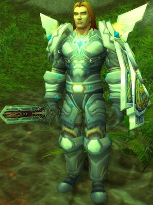 Прежде чем они вновь отправились в совместное путешествие, Максимилиан попросил верховного лорда преклонить колени и вновь принял его в качестве своего оруженосца.[11] Он объяснил, что его путешествие на Расколотые острова было опасным, поскольку он столкнулся со множеством «демонов», которых ему пришлось победить, однако это стоило ему доспехов, меча и скакуна. В связи с этим он отправил своего оруженосца забрать его снаряжение, пообещав повысить его до звания «оруженосца первого класса».[12] Доспехи Максимилиана были обнаружены в нескольких мешках в прибрежных водах; паладин пояснил, что снял их, чтобы избежать затопления в случае аварии корабля.[13] Его меч Экскалиберто и скакун Пименто были найдены у мурлоков племени Каменистого Болота в бухте кораблекрушения; по словам Максимилиана, они были украдены этими «демонами» во время его разведывательного задания вдоль побережья.[14][15] По завершении задания рыцарь сдержал свое обещание и повысил верховного лорда до «оруженосца первого класса».