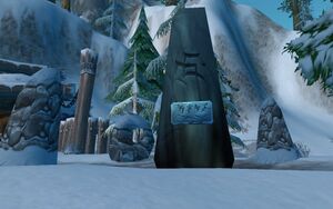 Здесь покоится Дуротан — вождь клана Северного Волка и отец нашего почтенного военного вождя Тралла. Он был храбрейшим среди нас, и его предали те, кто жаждал нашего порабощения. Дуротан отдал свою жизнь, чтобы мы могли обрести свободу. Мы чтим его и заветы, что он передал нам через своего сына.