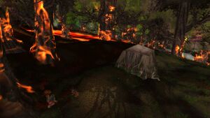Обмелевшее озеро Ирис (англ. Remains of Iris Lake) — это область в Ясеневом лесу, расположенная там, где до Катаклизма находилось озеро Ирис. Озеро испарилось и теперь представляет собой выжженную землю благодаря близлежащим потокам лавы с Громовой вершины.[1][2]