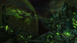 Владыка судеб Каззак исполнял обязанности командира Пылающего Легиона в Запределье, занимая Трон Кил'джедена.[51][52] Несмотря на то, что силы Пылающего Легиона на полуострове Адского Пламени были разгромлены, их присутствие ощущалось во всех остальных регионах Запределья, за исключением Зангартопи.