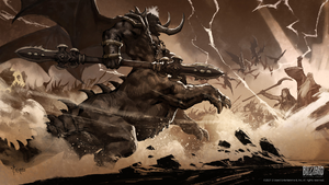 В конце концов Вариматрас был повержен Траллом, Сильваной и искателями приключений в ходе битвы за Подгород.[86] Во время битвы Вариматрас упомянул о «годах планирования» (попытки уничтожить Сильвану), и раздался голос невидимого «повелителя», порицавшего Вариматраса за неспособность помешать отряду Орды достичь тронного зала, после чего Вариматрас лично вступил в бой и был уничтожен. Несмотря на то, что Пылающий Легион тактически преуспел в разжигании напряженности между Альянсом и Ордой, в конечном счете он потерпел неудачу в своей стратегической цели — организации еще одного вторжения Легиона.