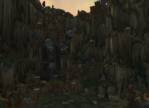 Это масштабное предприятие курировала Лига исследователей, которая обнаружила огромную, почти нетронутую, хотя и несколько треснувшую, статую, выступающую из скалы. Во время войны с Королем-личом железные дворфы захватили это место, препятствуя дальнейшим раскопкам. Руины указывают на работу титанов.[2]