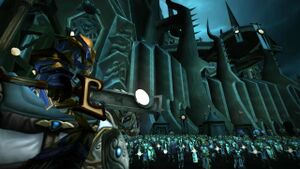 Когда объединенная армия начала подготовку к штурму цитадели Ледяной Короны, Серебряный Авангард и рыцари Черного Клинка приступили к изучению ее оборонительных сооружений. В преддверии решающего сражения обе организации заключили новый союз, целью которого стал штурм цитадели Ледяной Короны. Так появился Пепельный союз, объединивший свои силы в тени могучей крепости, чтобы начать наступление. Преодолев сопротивление и захватив вход в цитадель, Серебряный Авангард пробил врата, пожертвовав многим ради того, чтобы увидеть падение Короля-лича.[36] Затем Пепельный союз укрепился у входа и начал продвигаться вглубь комплекса.
