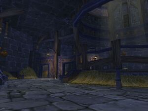 Стойла[1] (англ. Livery Stables) находятся сразу за воротами и ведут через лестницу на кухню. В этих стойлах обитал Аттумен и его лошадь Полночь.