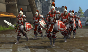 Армия Стромгарда в багровых одеждах известна своей воинской дисциплиной в бою и хорошо зарекомендовала себя во Второй войне; никто не мог поспорить с ее решимостью, поскольку она смогла в одиночку сдержать всю армию Орды орков, позволив остальным членам Альянса Лордерона мобилизоваться.[74] Ее воины хорошо подготовлены к открытому бою со всеми врагами человечества.[75] Каждый из воинов хорошо освоил альпинизм и боевые искусства.[76] Они признаны верными и стойкими союзниками.[77]