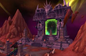 Портал в Запределье гораздо больше и богаче украшен, чем портал на Азероте, и, как и на Азероте, был сильно укреплен как Ордой, так и Альянсом. Оборонительные сооружения постоянно атаковали демоны, возглавляемые гигантским властителем преисподней. Среди демонов были стражи Скверны, инферналы, падающие дождем с неба, и тяжелобронированные стражи гнева. Войска Азерота сделали порталы в Оргриммар и Штормград для вызова подкреплений на фронт.