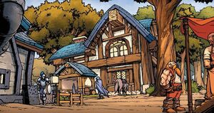 - В World of Warcraft таверна известна частыми дуэлями, которые происходят прямо у ее входа, и столь же частыми «экзотическими развлечениями», которыми славится Златоземье. Это, пожалуй, самая оживленная таверна за пределами города во всех зонах. Иногда можно встретить игроков, которые ради развлечения взбираются на крышу и разжигают костер.