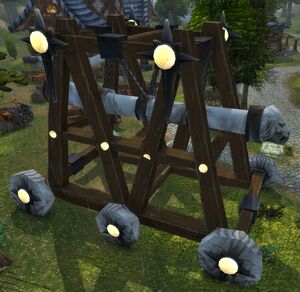 Таран использовался для разрушения укрепленных стен и дверей. Его также можно было использовать против вражеских солдат.[2]