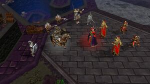 Плеть сражается с войсками Даларана, в то время как Кел'Тузад призывает Осквернителя.