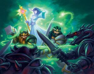 В то время как места сражений подталкивали Альянс и Орду к новой войне,[20] леди Джайна Праудмур пригласила короля Вариана Ринна и вождя Тралла на встречу в Тераморе, чтобы найти решение военным действиям.[21] Однако король Вариан Ринн пропал при загадочных обстоятельствах по пути на дипломатическую встречу. Считалось, что в Штормграде царил беспорядок, посему юный Андуин Ринн получил корону, чтобы сохранить порядок в королевстве Штормград, по приказу королевского советника, леди Престор.[19] Верховный лорд Болвар Фордрагон действовал как своего рода регент Штормграда или главнокомандующий войсками Штормграда от имени короля Андуина, а леди Престор консультировала Болвара по вопросам правильного использования ресурсов королевства.[22][23]