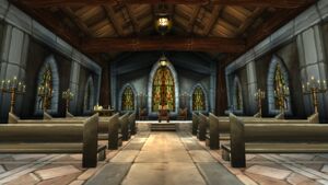 Церкви в королевстве Штормград возводятся из редкой породы дерева, известной как святой дуб. Эта древесина обрабатывалась особым образом на лесопилках.[79]