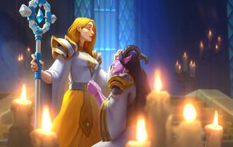 Заинтригованная ритуалами лунного поклонения, церковь также направила своих представителей в союзное сестринство Элуны в Калимдоре, выражая надежду на будущее обращение ночных эльфов к Свету небес.[36]