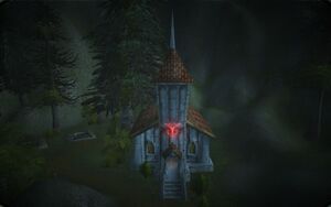 Во время второй фазы наступления часовня была захвачена и сожжена рыцарями смерти. Рядом с часовней находится небольшая хижина, в которой члены Алого ордена держали узников Серебряного Рассвета. Герой-рыцарь смерти отправился сюда, чтобы убить определенного узника.[3]