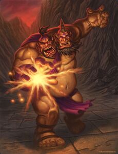 - Когда-то утверждалось, что Чо'Галл был одним из первых огров-магов, или даже первым.[7] В дополнении Warlords of Draenor это было пересмотрено путем введения Горианской империи как многовековой цивилизации огров, управляемой длинной династией огров-магов. Возможно, вместо этого Чо'Галл был одним из первых, если не первым, огром-магом Орды орков.